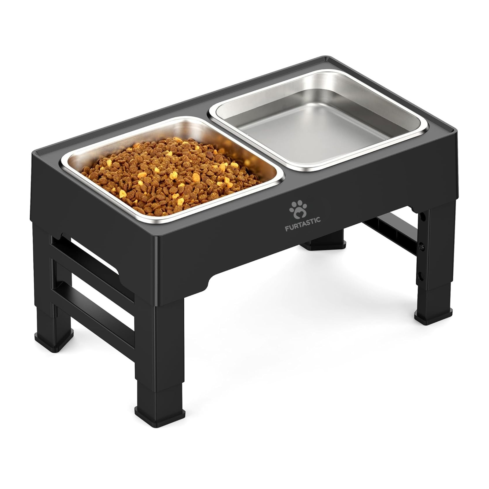 Breng eet- en drinktijd naar een hoger niveau met onze in hoogte verstelbare voerbak van Furtastic. Deze set met twee RVS bakken biedt je hond een comfortabele en gezonde eetervaring. Doordat de standaard in 4 hoogtes verstelbaar is, kan je hond eten in een natuurlijke houding zonder onnodige belasting van nek en gewrichten. Dit is niet alleen prettig voor alle honden, maar vooral ideaal voor oudere honden of viervoeters met gewrichtsproblemen.