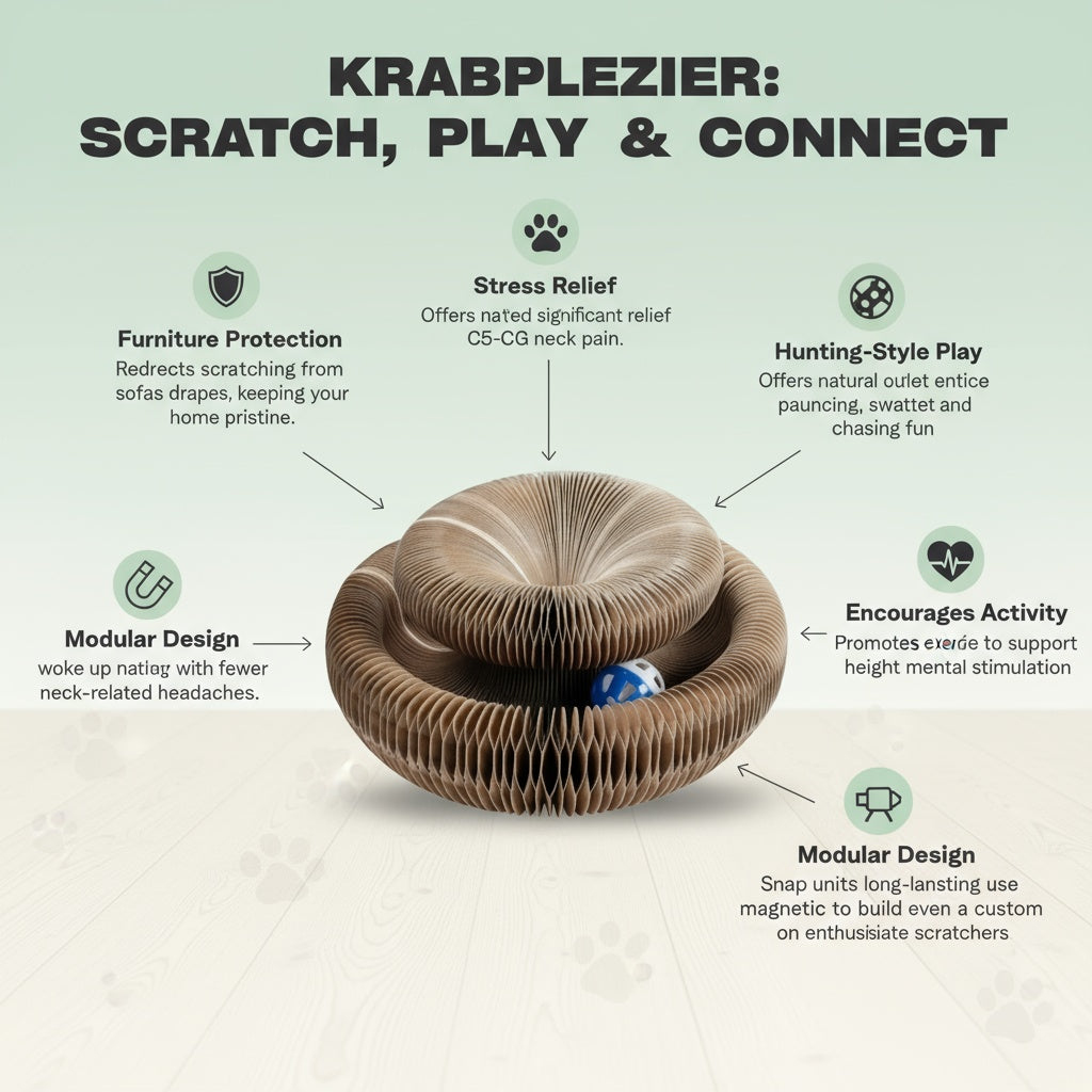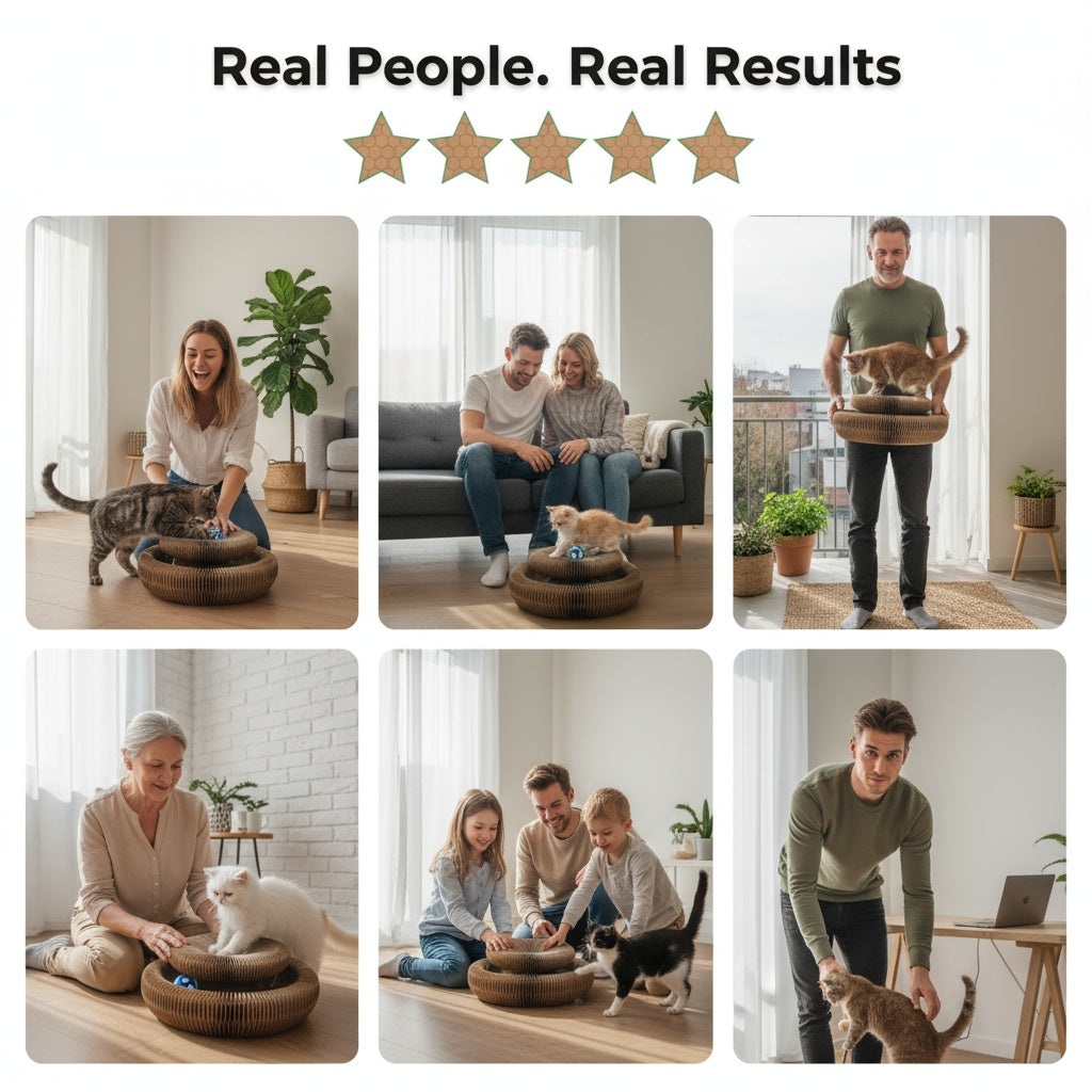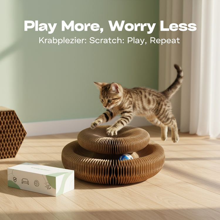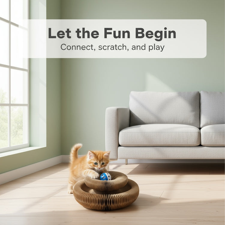 Combineer krabpalen, rollende balletjes en magnetische modules voor eindeloze opstellingen. Bescherm je meubels, verminder stress en houd katten van alle leeftijden actief.