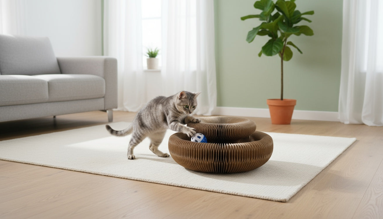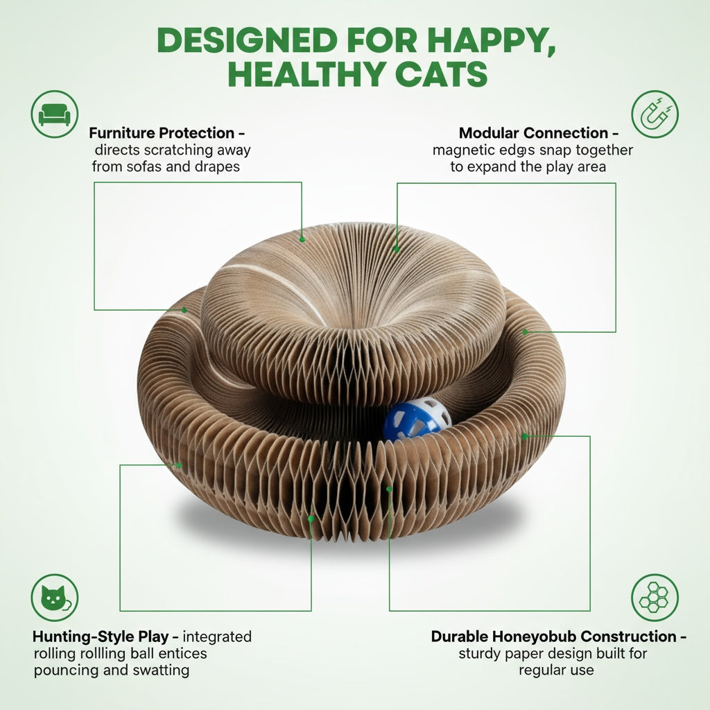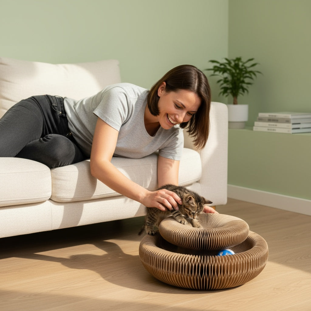 Combineer krabpalen, rollende balletjes en magnetische modules voor eindeloze opstellingen. Bescherm je meubels, verminder stress en houd katten van alle leeftijden actief.