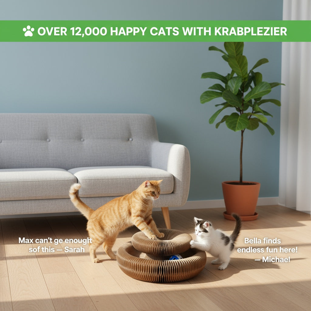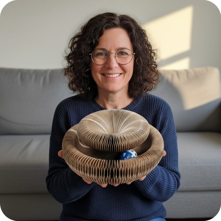 Mijn kat Duo is dol op Krabplezier! Het modulaire ontwerp houdt hem urenlang bezig en mijn bank blijft vrij van krassen.