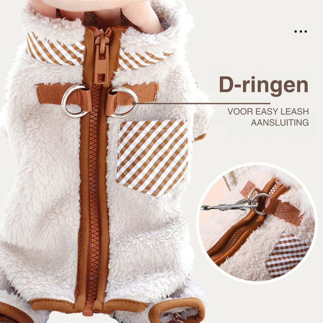 Warmte en comfort: De dikke, geïsoleerde stof zorgt ervoor dat je huisdier warm blijft, zelfs bij vriestemperaturen, zodat hij of zij comfortabel kan genieten van buitenactiviteiten.